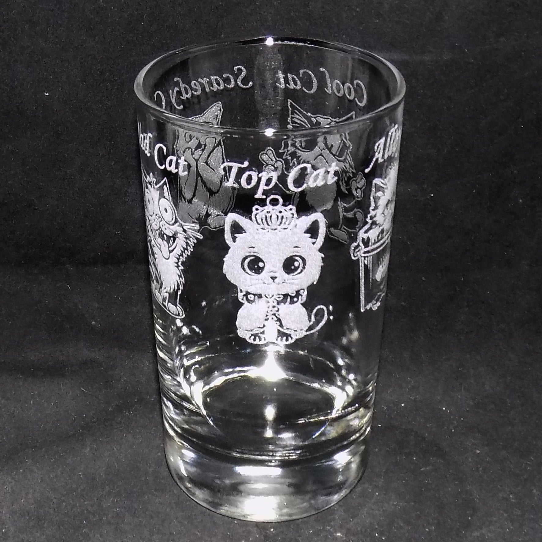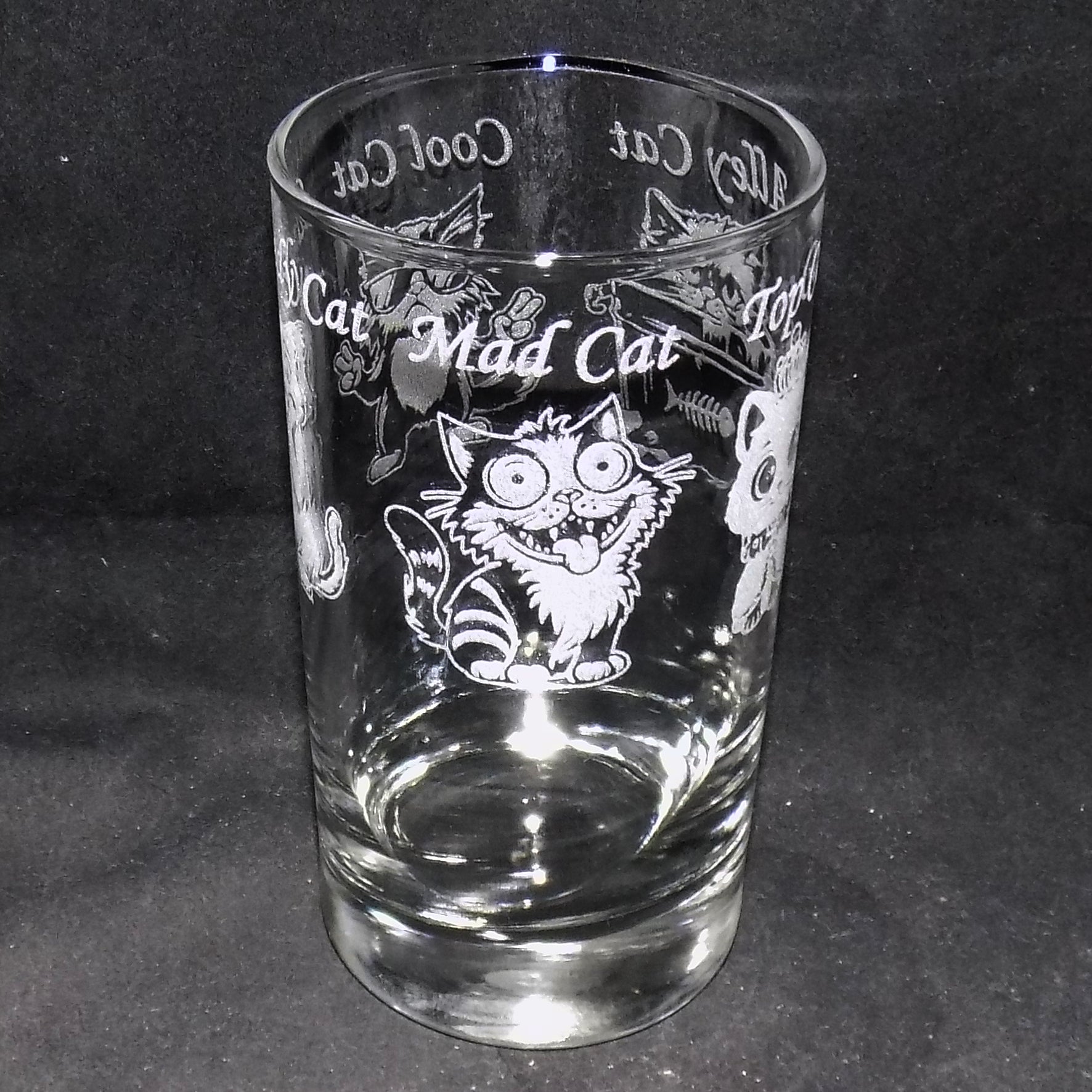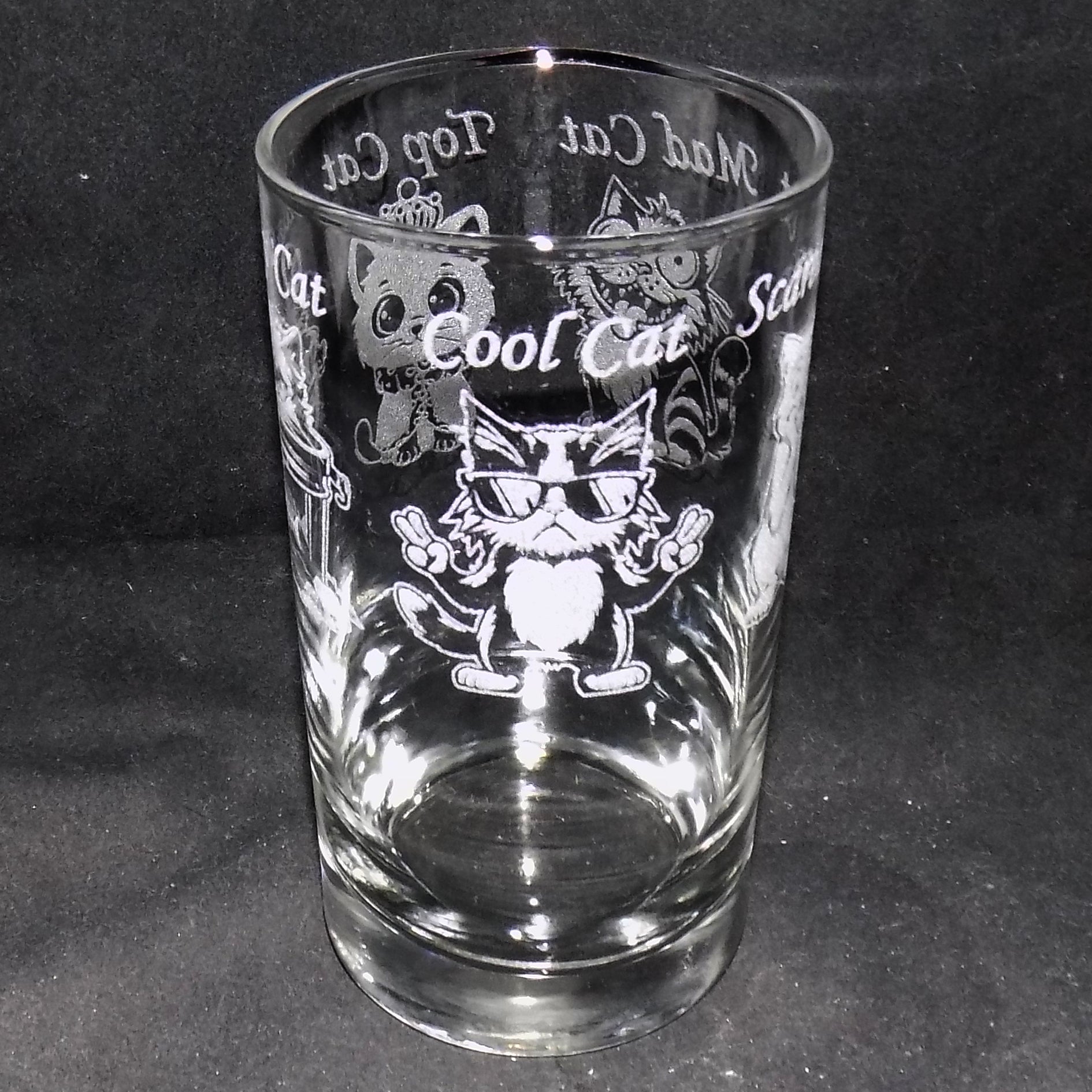 This tall glass features light hearted images of beautifully engraved cat designs around images around the rim, making it a perfect gift for cat lovers or a meaningful keepsake. Ideal for both special occasions and daily use, its elegant craftsmanship adds personality to any setting. Perfect for enjoying a variety of beverages, this half-pint highball glass combines style and functionality.
