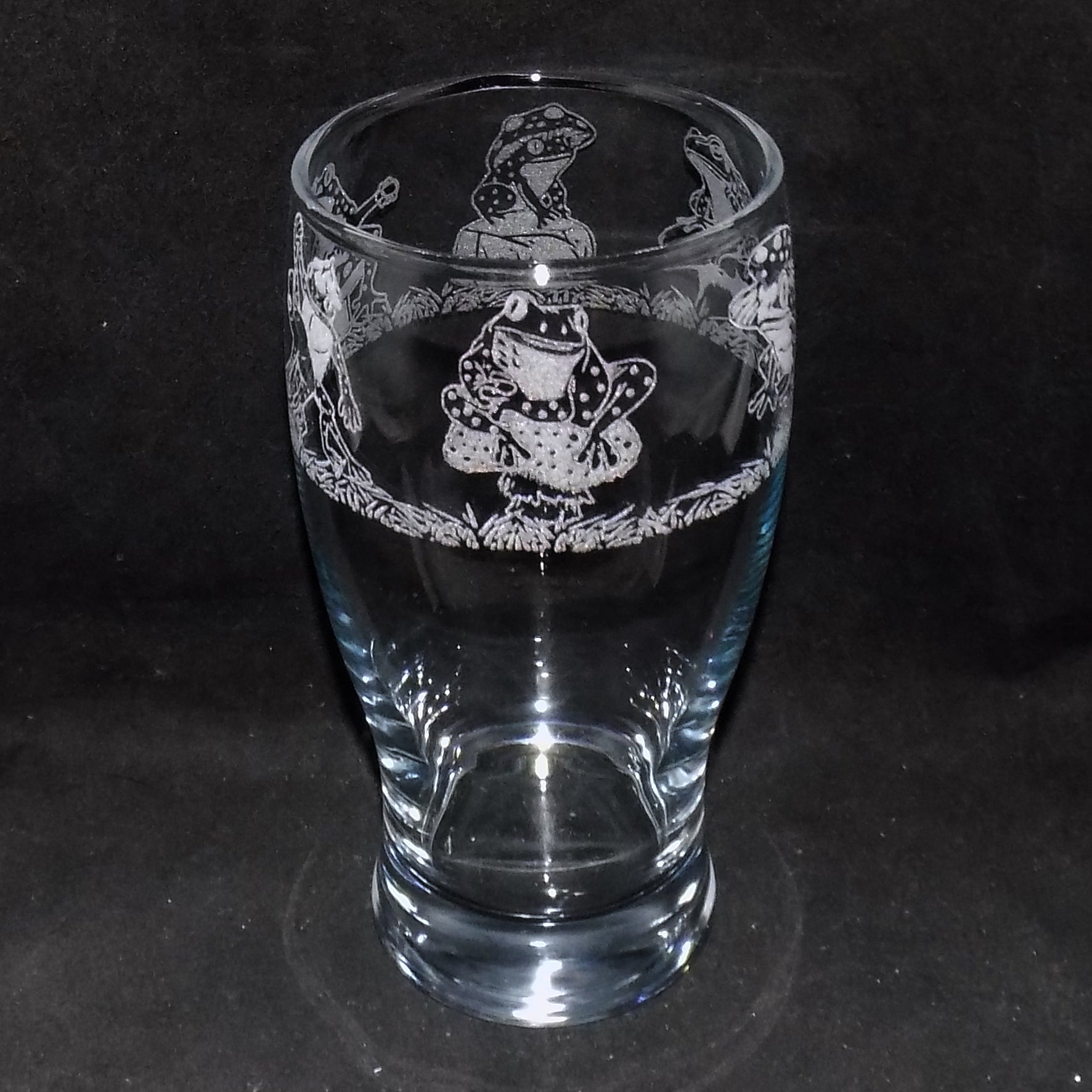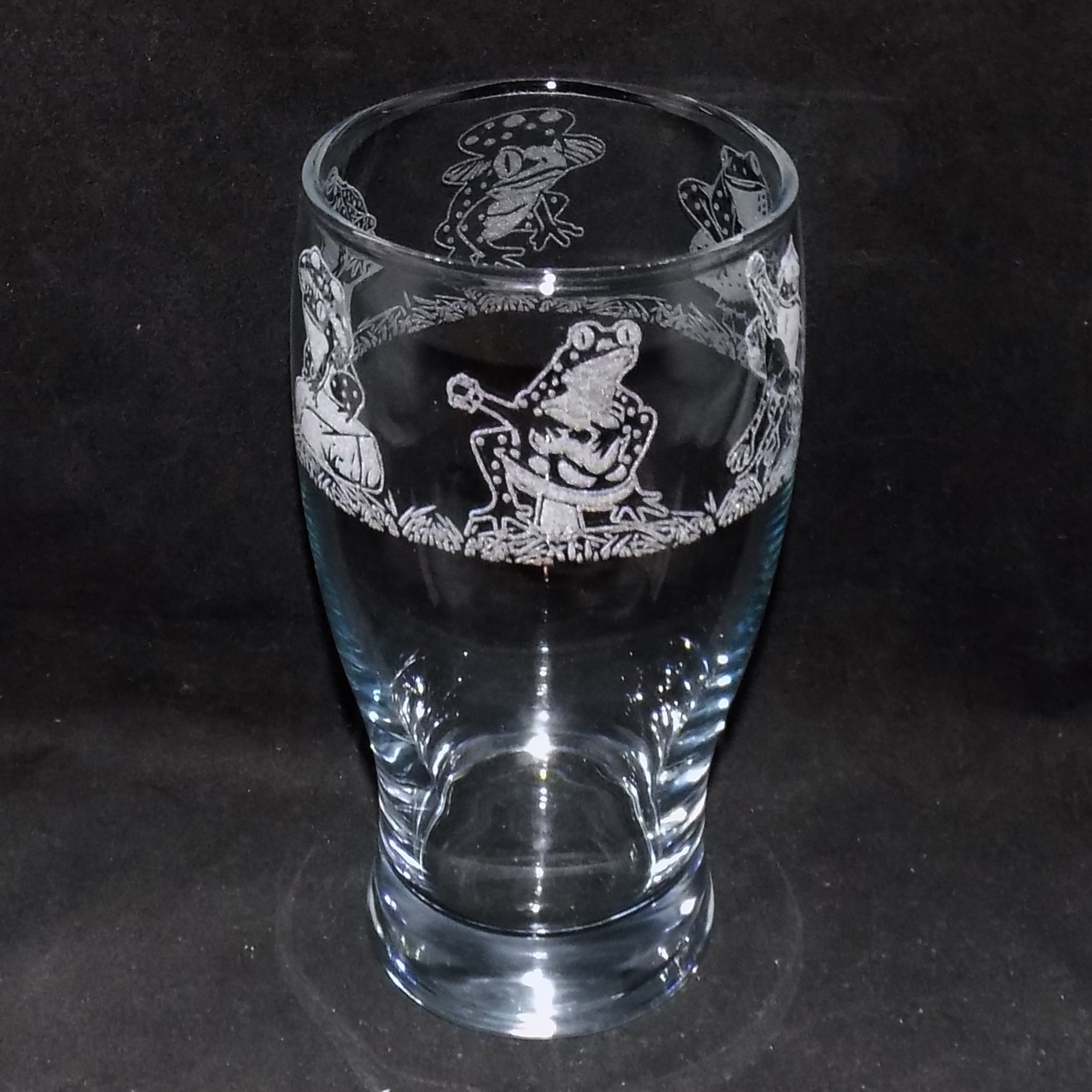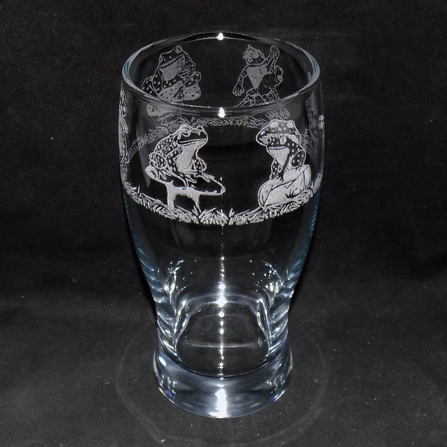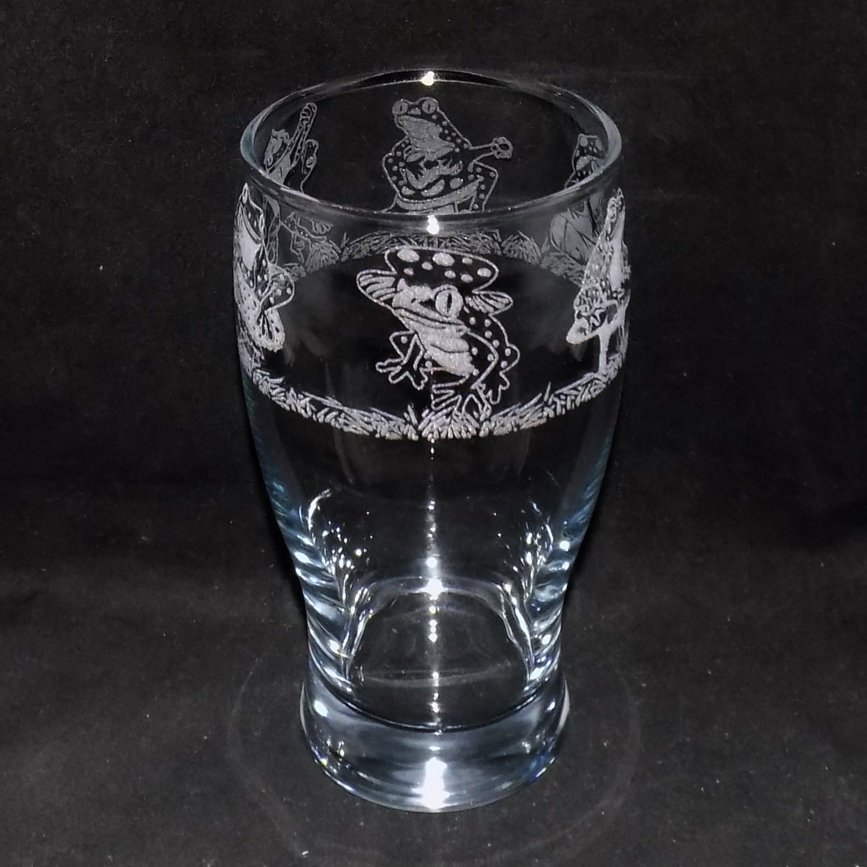 This pint glass features a charming design of beautifully engraved frog images around the rim, making it a perfect gift for frog lovers. Ideal for both special occasions and daily use, its elegant craftsmanship adds personality to any setting. Perfect for enjoying a variety of beverages, this robust pint glass combines style and functionality.