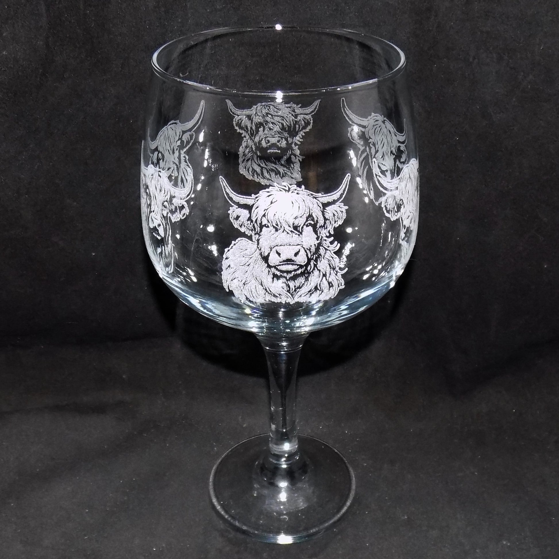 This unique gin glass features highland cow designs around the large bowl. It makes a thoughtful gift for any highland cow lover or a charming addition to your own collection. Perfect for special occasions or everyday use, it combines fine craftsmanship with personal flair, suitable for both alcoholic and non-alcoholic beverages.
